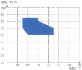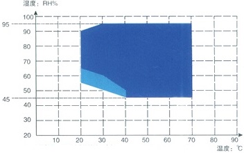 *含有制冷系統(tǒng)儀器由于需要散熱,建議 溫濕度組合使用區(qū)域,使用環(huán)境溫度為 *圖中